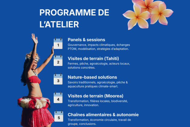 Deux journées de visites de terrain seront organisées à Tahiti et Moorea, permettant aux délégations PTOM de découvrir des initiatives locales : fermes agroécologiques, rahui (zones de pêche réglementée), installations de transformation, exploitations scolaires agricoles et autres projets portés par des acteurs polynésiens.