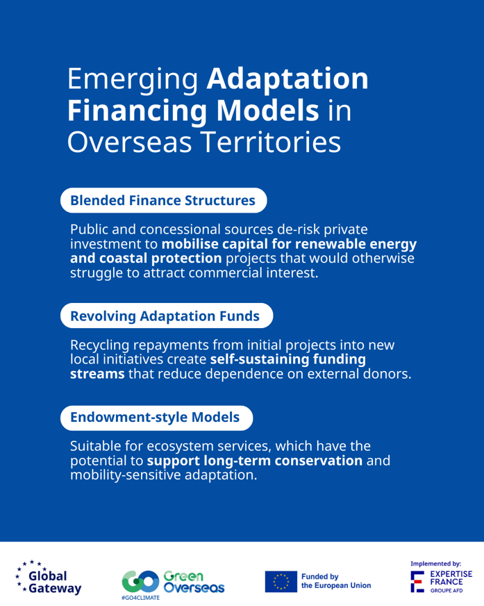 On the climate resilience dimension, the GO Facility addresses structural needs, including coastal zone management, climate-resilient water resource systems, and the development of food systems that can withstand increasing climate volatility. Importantly, the Facility supports public-sector capacity building, ensuring that OCT administrations are better equipped to manage risks, plan long-term adaptation, and engage strategically with external funders.