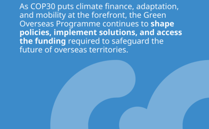 As COP30 puts climate finance, adaptation, and mobility at the forefront, the Green Overseas Programme continues to help the OCTs shape policies, implement solutions, and access the funding required to safeguard the future of overseas territories. The message from Belém is clear: when islands are equipped with the right mechanisms, they can set a leading example. Resilience is built through locally anchored innovation.